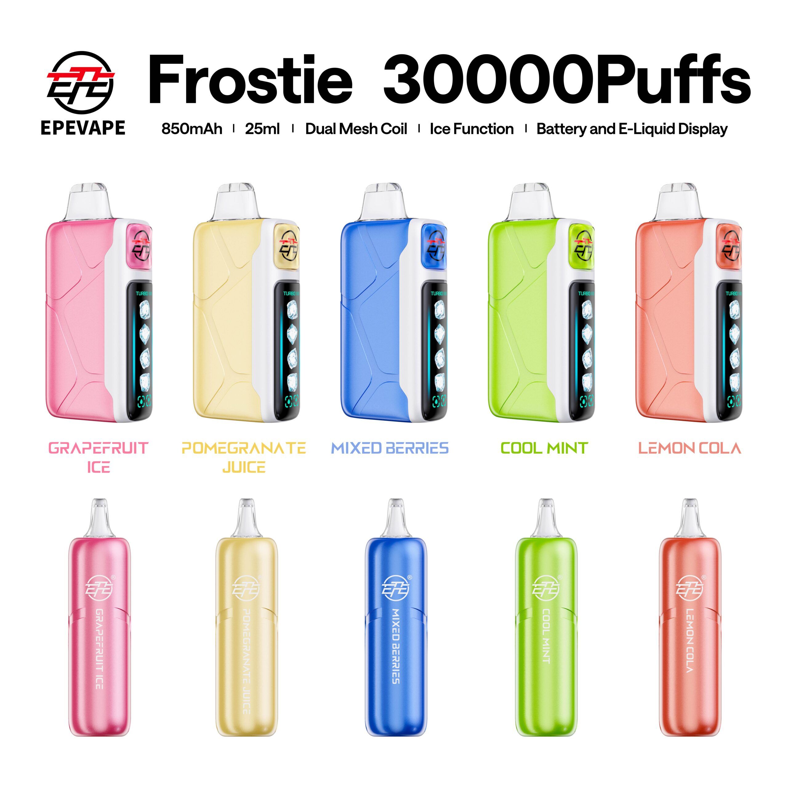 Frostie rave reviews 32000puffs features a button to add ice function, the equipment uses double heating wires, equipped with a separate button to adjust the ice by yourself, a total of 25ml